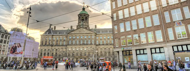 Dam Square offers an impressive mix of history and sights. The National Monument was unveiled in 1956 to commemorate the victims of the Second World War. Every year on May 4th, the National Remembrance Day takes place here. You'll also find the Royal Palace and the Nieuwe Kerk (New Church) on the square, both iconic locations in the city. Furthermore, the Red Light District, the narrowest house in the world (Singel 7), and the Magna Plaza shopping center are within walking distance.