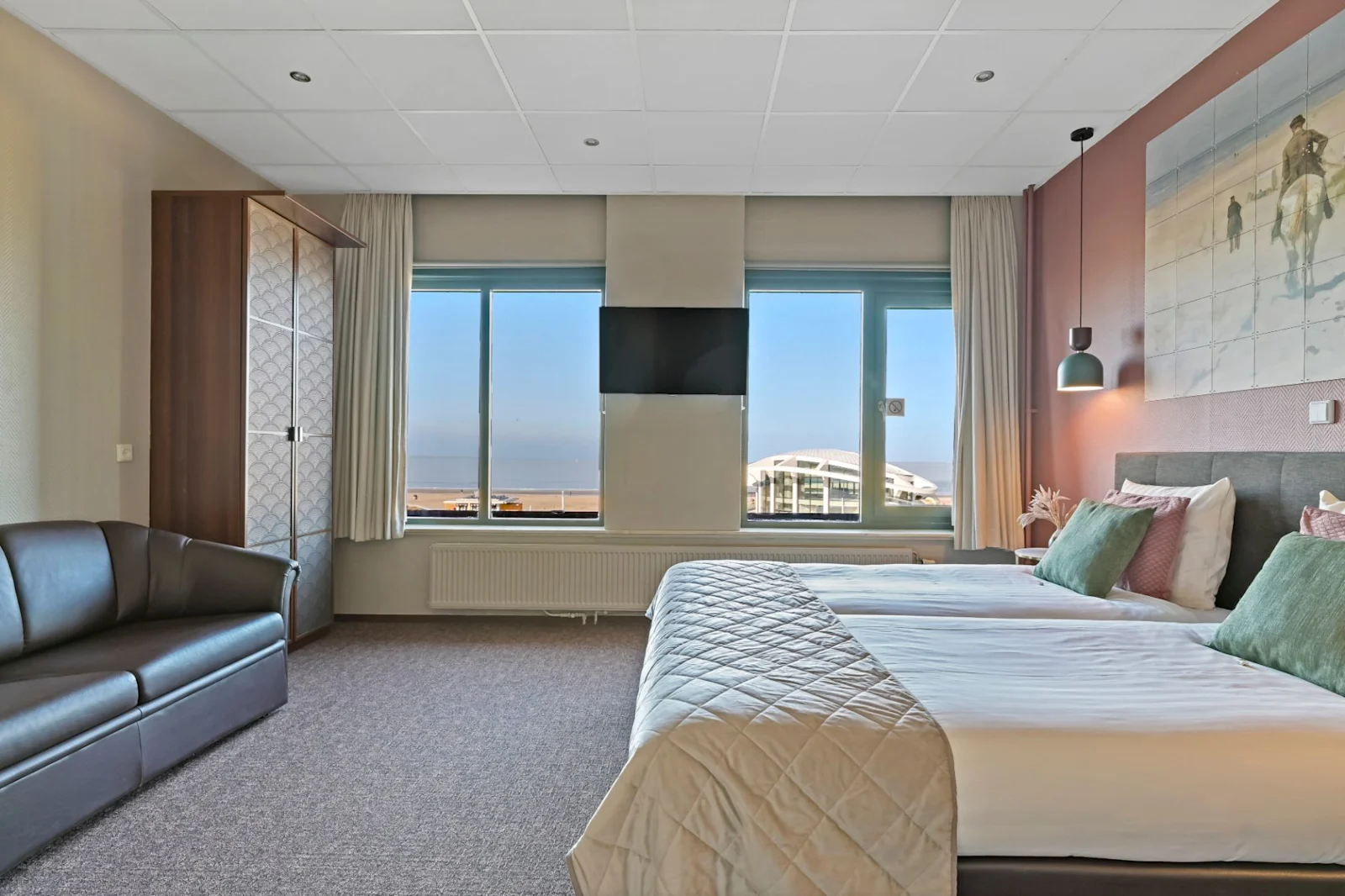 Strandhotel Scheveningen is a cosy and stylish seaside hotel with beautiful views of the North Sea. It’s ideally located on the boulevard and combines a warm atmosphere with modern comfort. The rooms are tastefully decorated, some offering sea views. The restaurant serves delicious breakfasts and dinners with a view of the beach. From the hotel, you can easily walk to the Pier, SEA LIFE, or one of the many nearby beach bars. With parking at Boulevard car park, your stay at Strandhotel Scheveningen starts off relaxed and carefree.