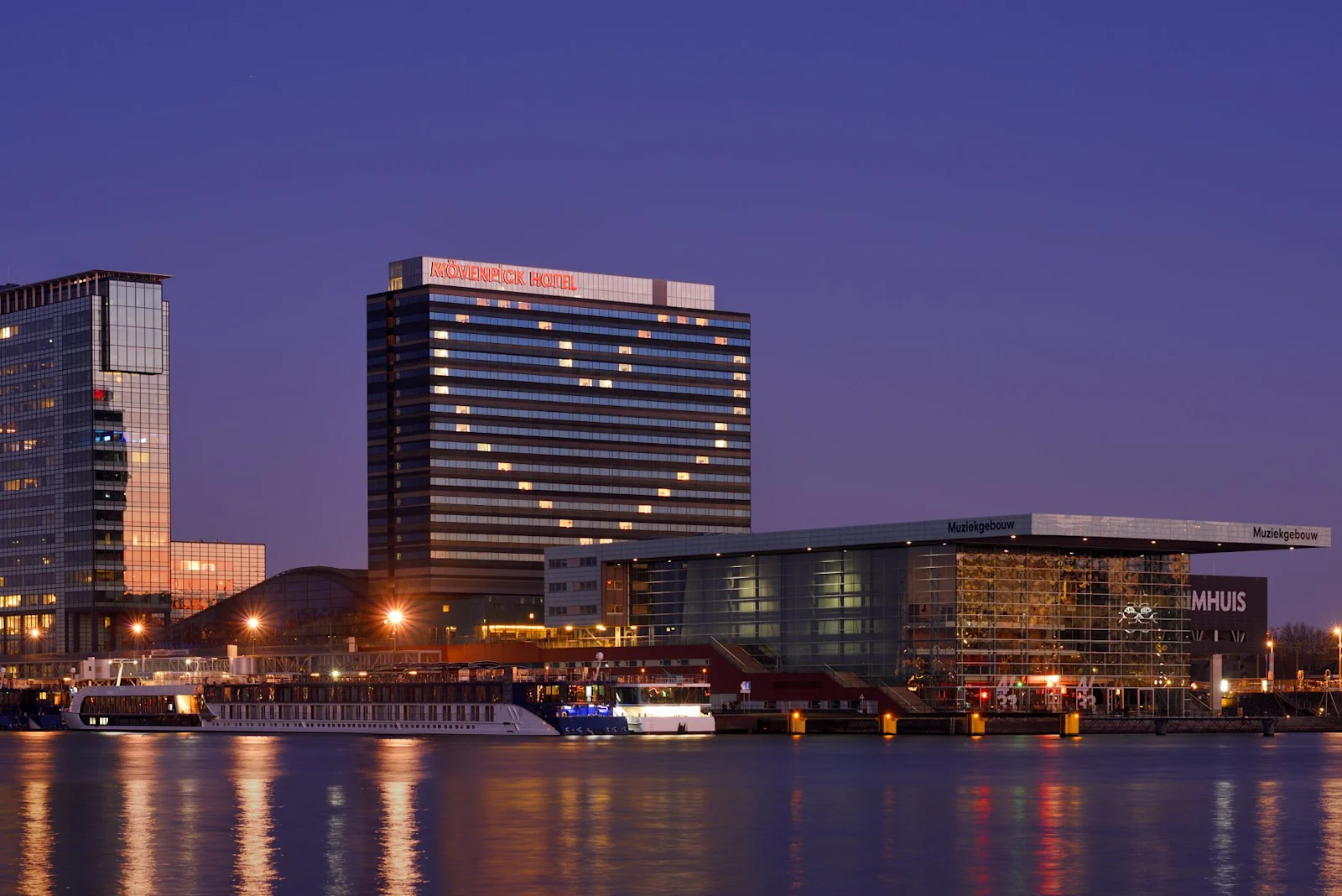 Het Mövenpick Hotel Amsterdam City Center ligt direct aan de IJ-oever en biedt een spectaculair uitzicht over het water en de stad. Dankzij de centrale ligging loop je in een kwartier naar Amsterdam Centraal Station en ben je zo in het historische centrum of bij culturele hotspots zoals NEMO Science Museum en het Scheepvaartmuseum. Het hotel is de ideale uitvalsbasis voor zowel zakenreizigers als toeristen. Wil je zonder parkeerstress arriveren? Kies dan voor parkeergarage IJ-oever Centrum. Deze moderne garage ligt direct naast het hotel. Door jouw parkeerplek online te reserveren ben je verzekerd van een plek en bespaar je op je parkeerkosten.