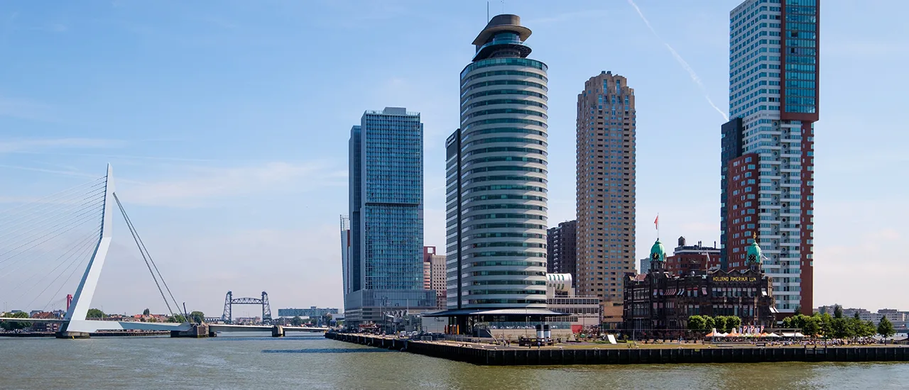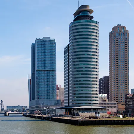De Kop van Zuid is een moderne stadswijk die het verleden van de Rotterdamse haven combineert met vooruitstrevende architectuur. Hier vind je onder meer het Nederlands Fotomuseum, de Cruise Terminal, Hotel New York en het Nieuwe Luxor Theater. Aan de overkant van de Maas ligt het centrum, bereikbaar via de iconische Erasmusbrug. De wijk bruist van de activiteit: van horeca tot kunst en cultuur. Dankzij de ligging aan het water is dit een van de mooiste plekken van Rotterdam om de skyline te bewonderen.